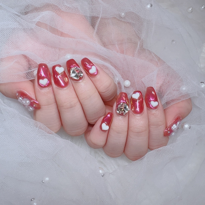 少し赤っぽいミラーネイルしてたけど