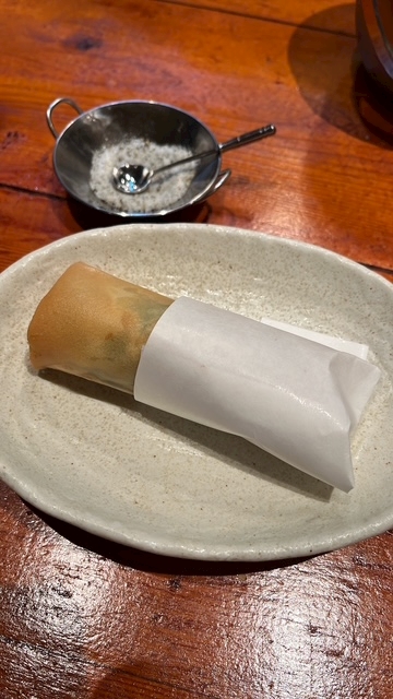 次はエビと葉セロリの春巻き