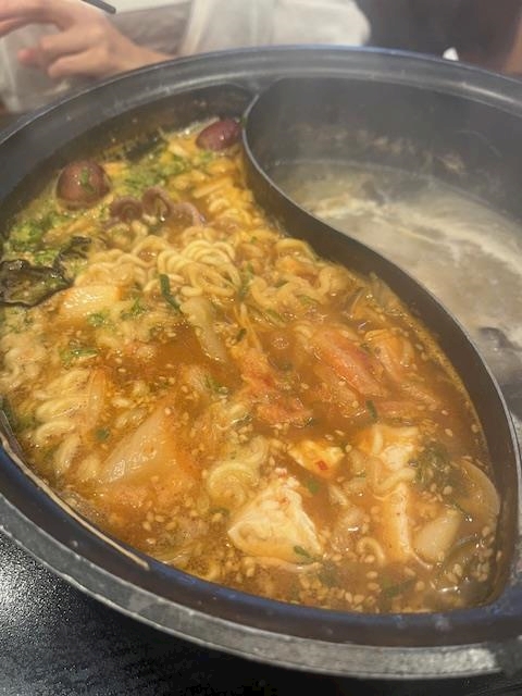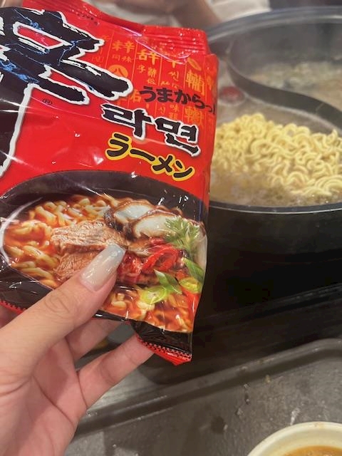 〆には辛ラーメンも食べれて