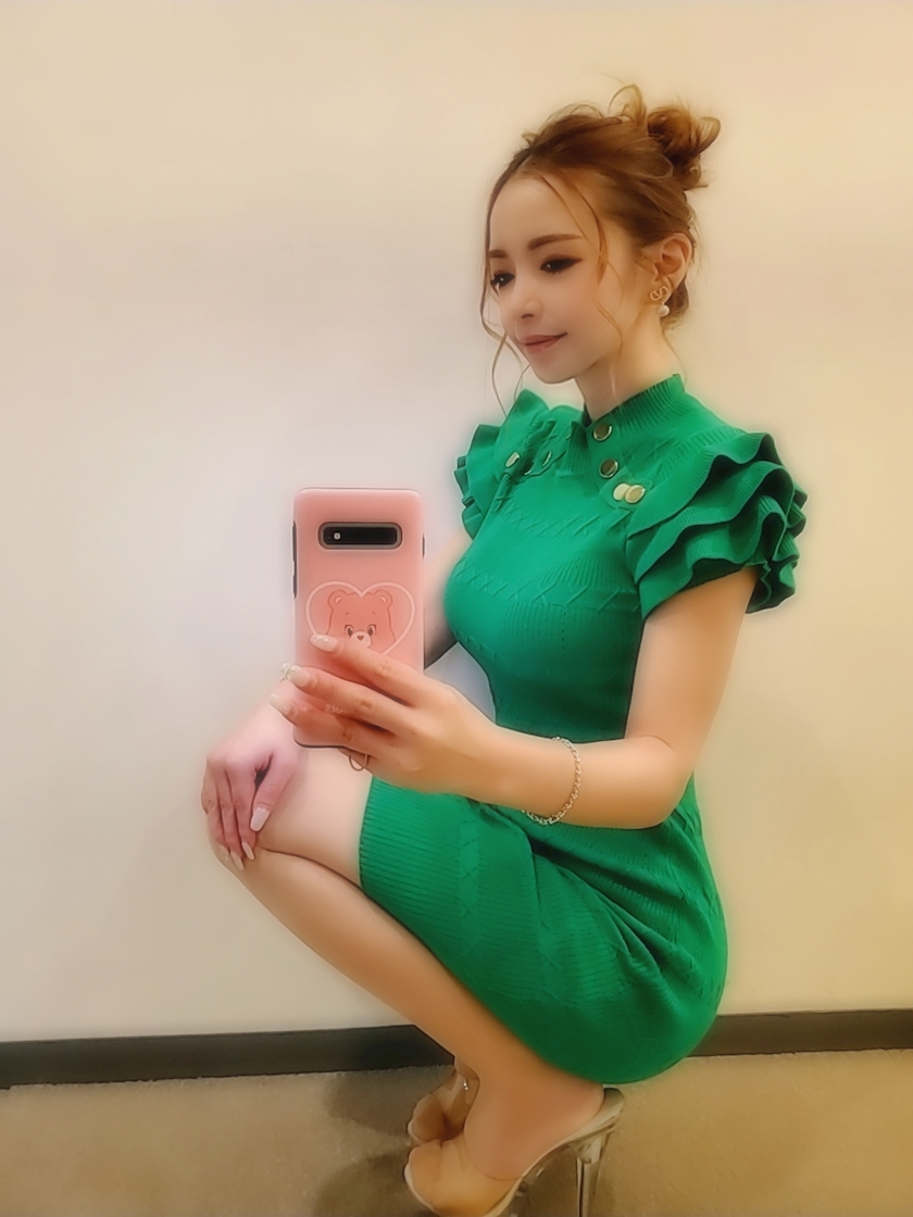今日はグリーンドレスにしたよ💚
