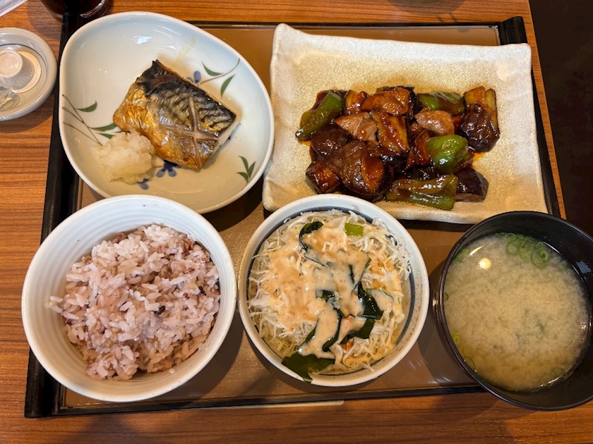 「なす味噌と焼き魚の定食」でした🐟🫶🏻