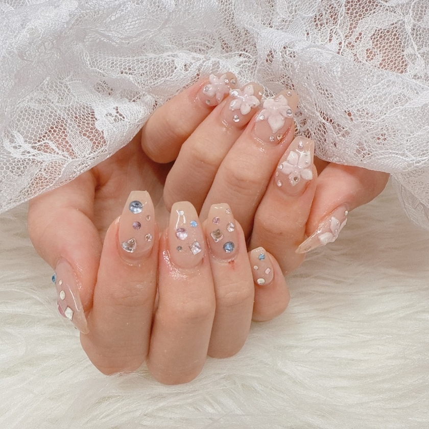 きらきらのほうは宝石ネイルっていうらしい🫧