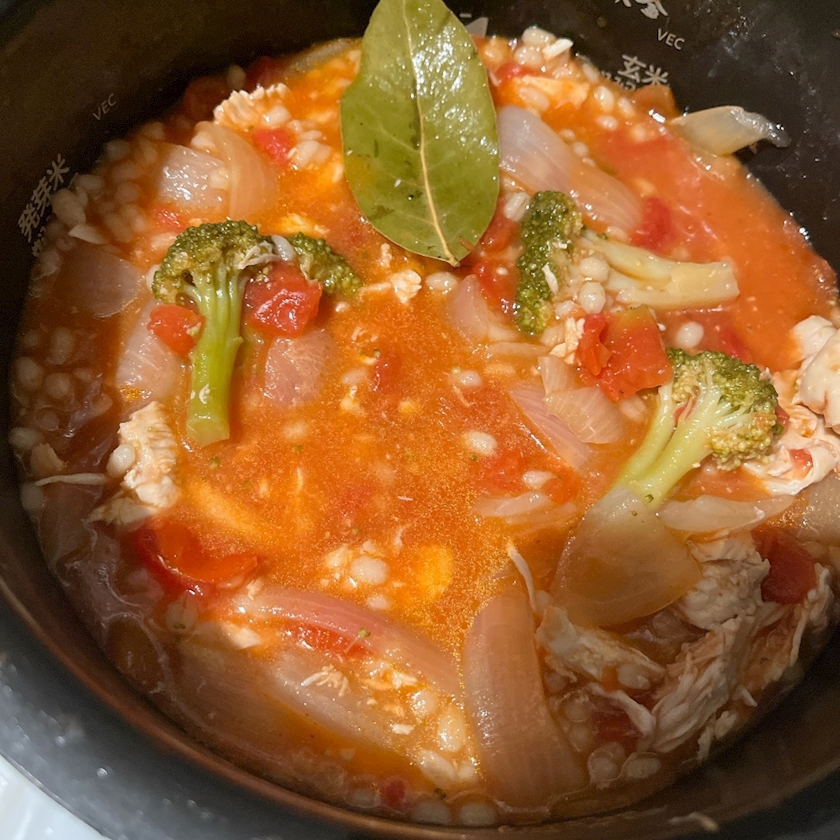 トマトと玉ねぎとブロッコリーと大麦