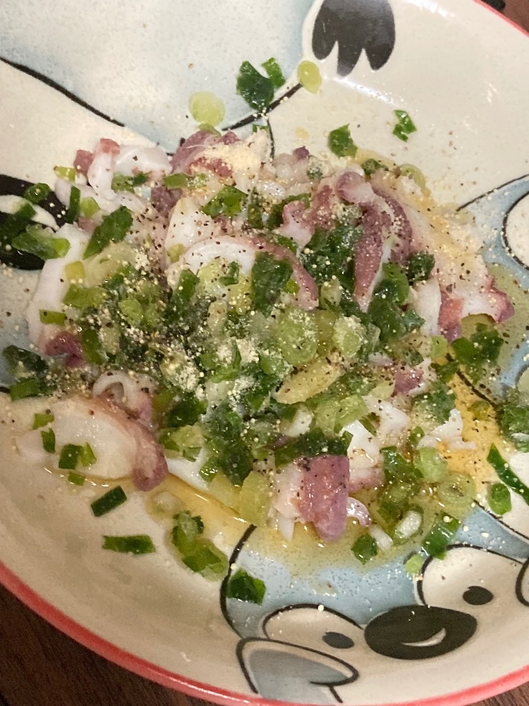 タコを切ってネギとごま油に鶏ガラ、塩コショウをかければすぐ完成‼️🥺