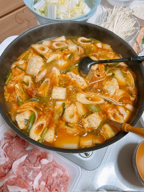 家族みんな巻き込んでキムチ鍋したんですけど