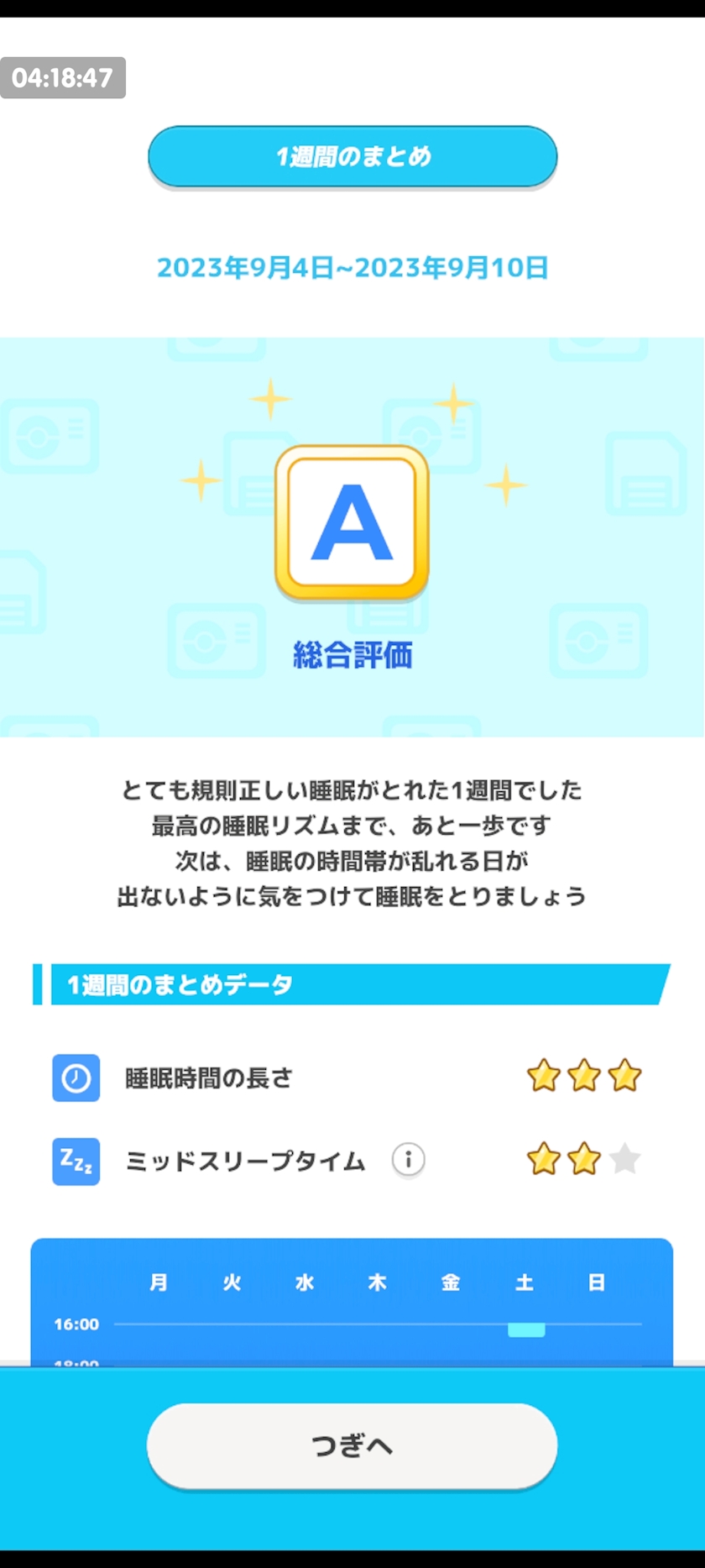 先週はまともに寝れたので初めてポケモンスリープAランク取れました