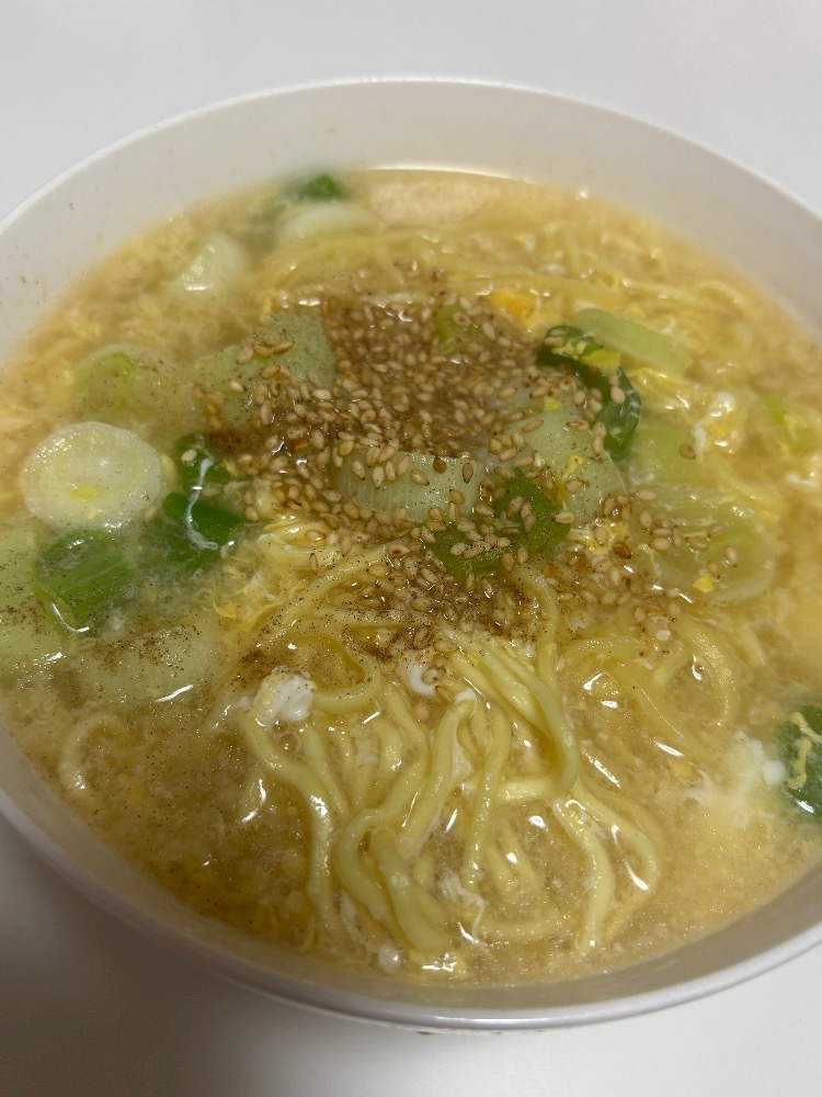 ネギとたまごとしろごまと胡椒をかけて食べるのが