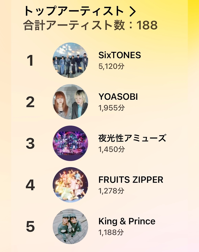 毎年さ1年でいちばん聞いたアーティストとか