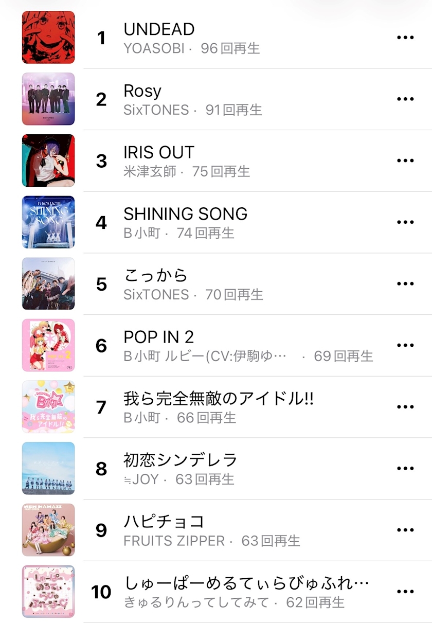 UNDEAD と IRISOUT はめっちゃ聴いた自覚ある🎶