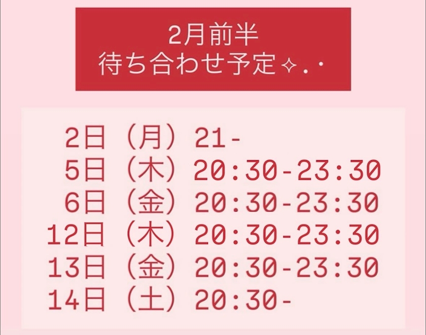 2月前半の予定ちょこっと変更あったのでおしらせ!