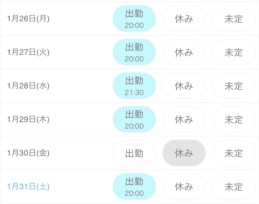 来週のシフトです↓