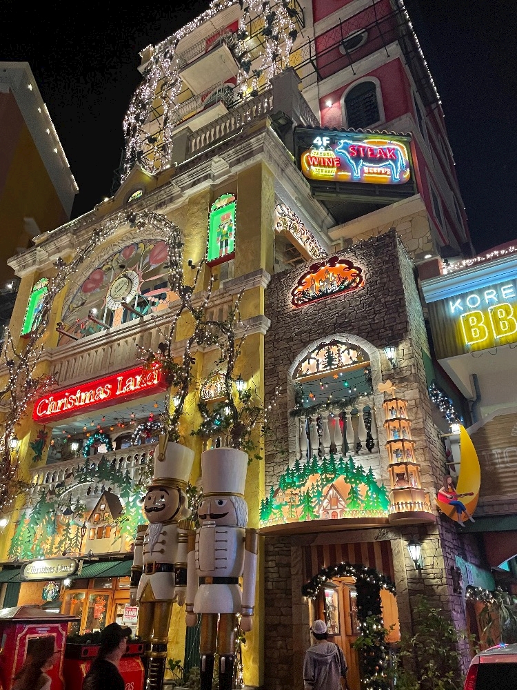 ライトアップされた建物が可愛くて、歩いてるだけでワクワク。