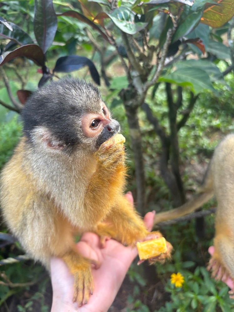 可愛い小さなリスザルがご飯を食べてるのを眺めたりこのリスザルちゃん達はみんな人間慣れしてて手に乗ってきたり間近で見れたりで可愛すぎた🥹