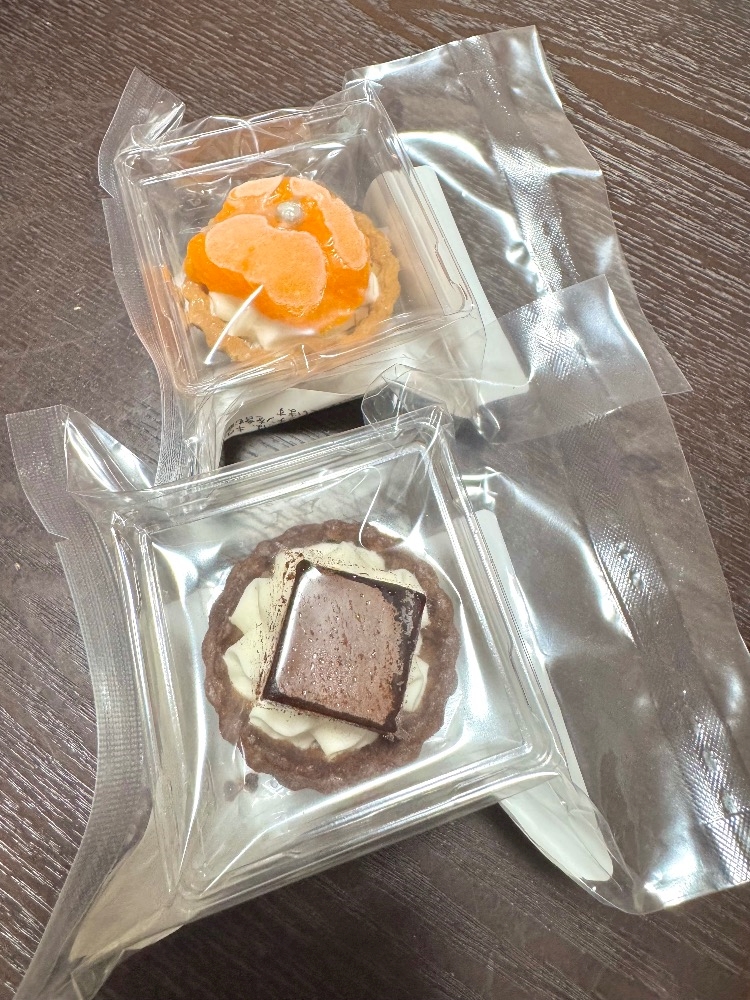 ミニタルトの生チョコとみかんの2つにした🥹