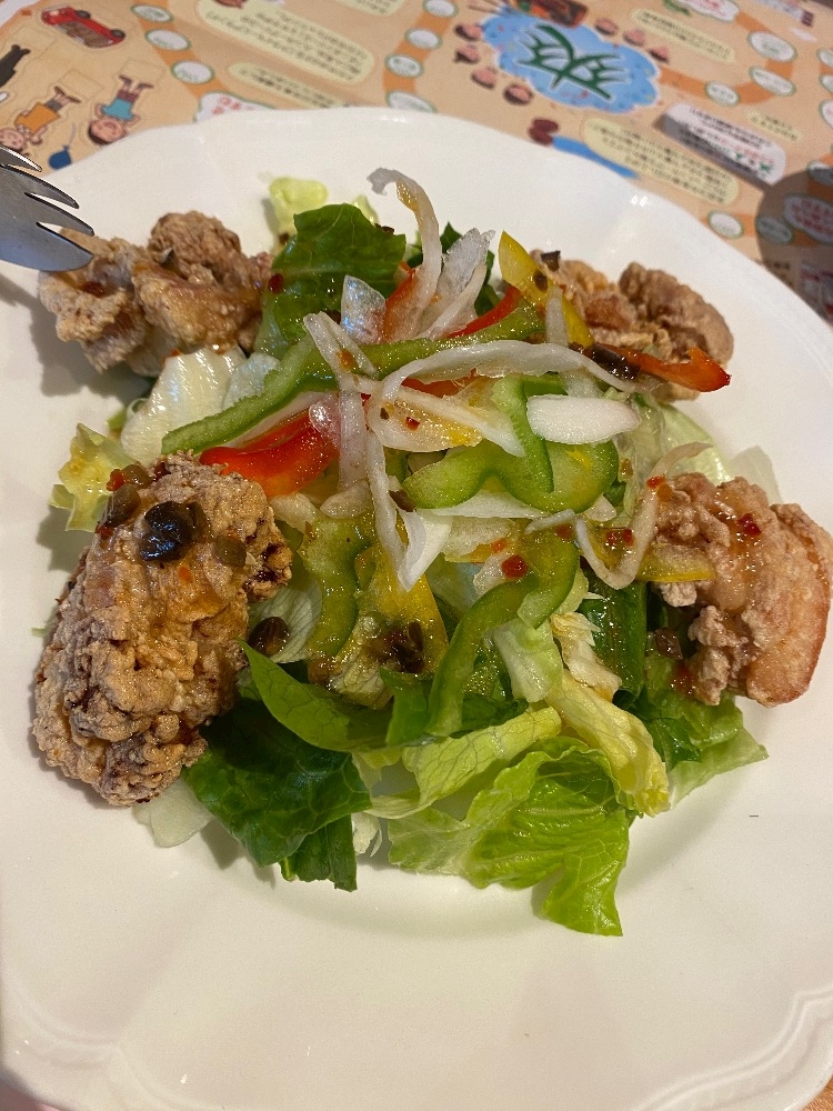 竜田揚げサラダはシェアした♡