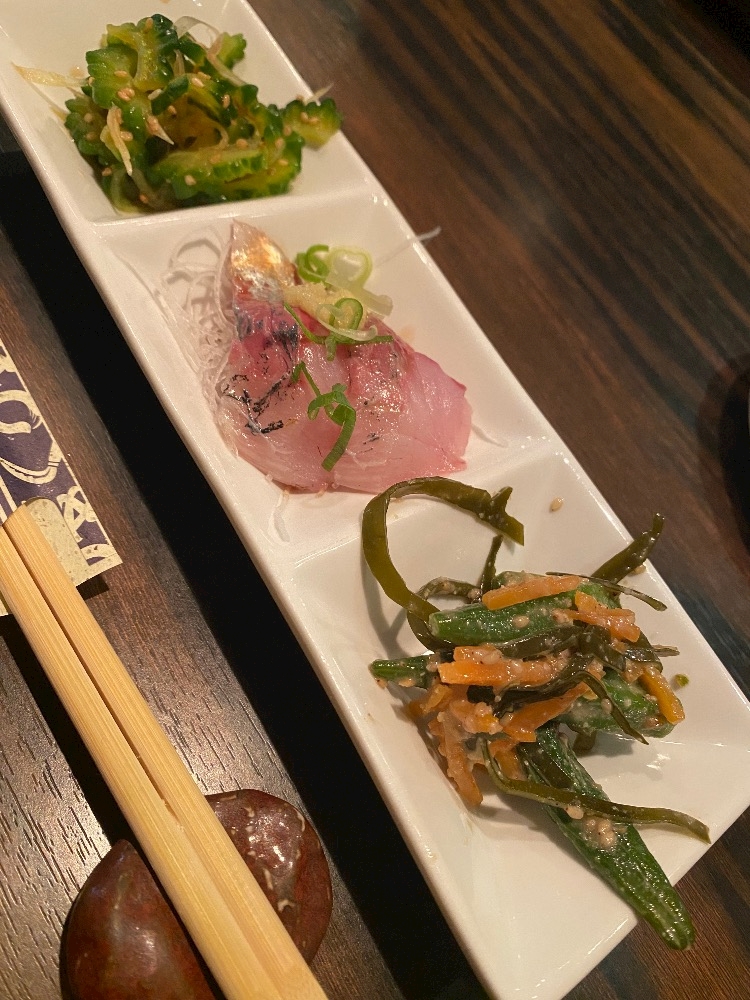 お通しのゴーヤと茗荷の