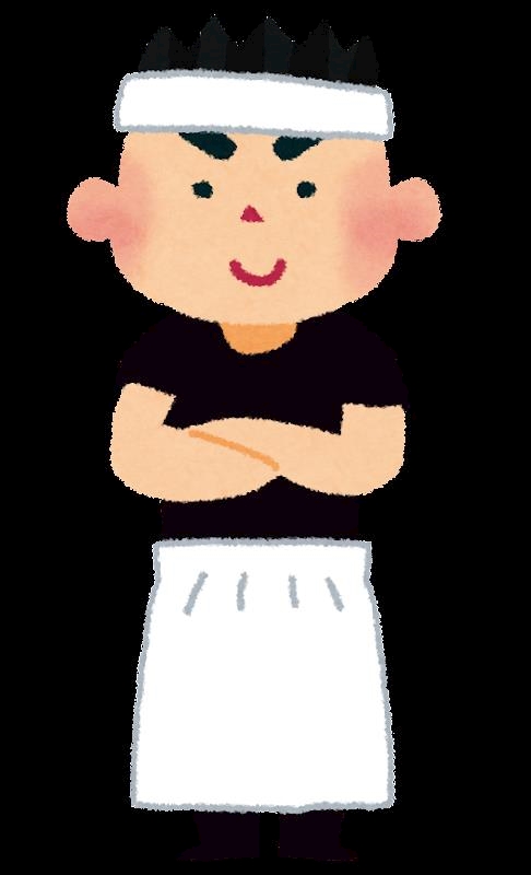 頭に白タオル巻いて
