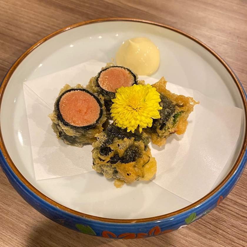 明太子に海苔巻いて揚げたやつ