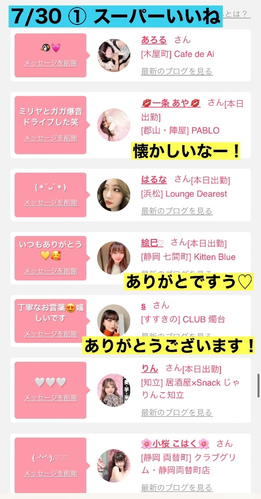 スーパーいいねのお返事(7/30~8/1)