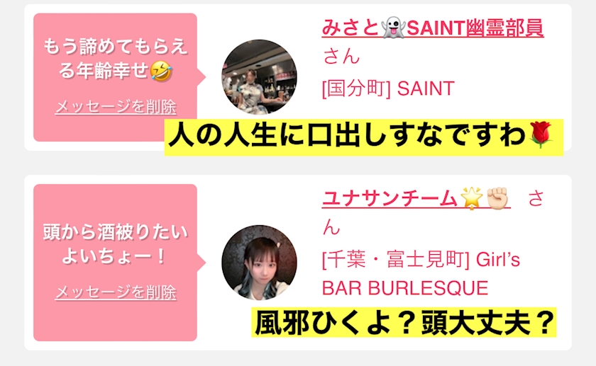 キャバクラやスナックなど