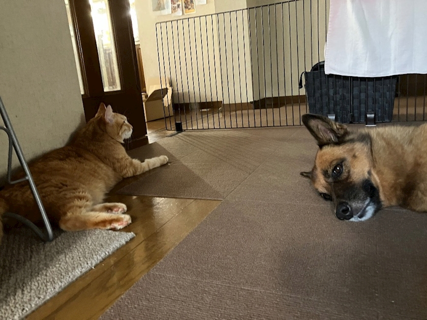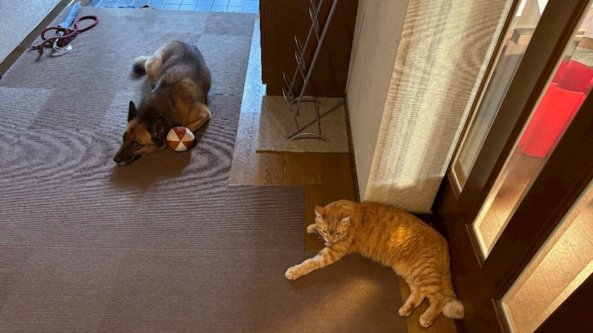 2匹そろって廊下に落ちてる