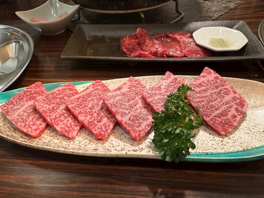 奥がワサビ塩で食べるハラミ