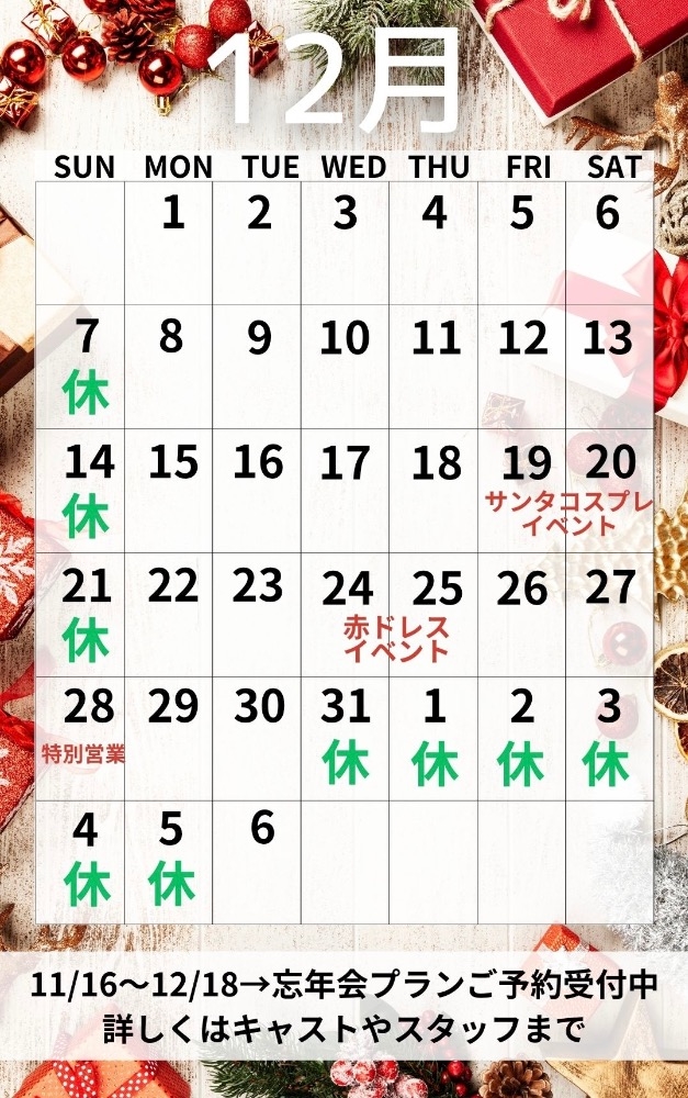 12月のお知らせ