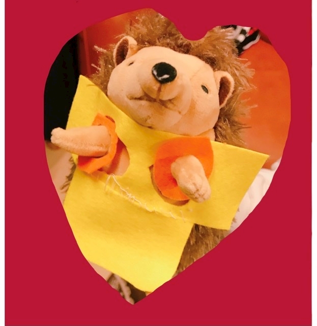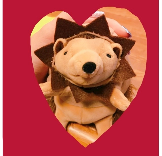 ちびことハリネズミのぬいぐるみさんに