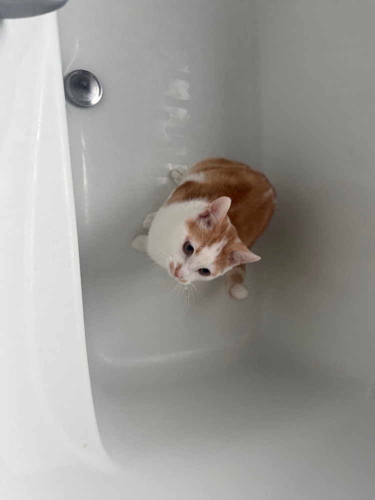 お風呂場に着いてきたにゃんこ🐱