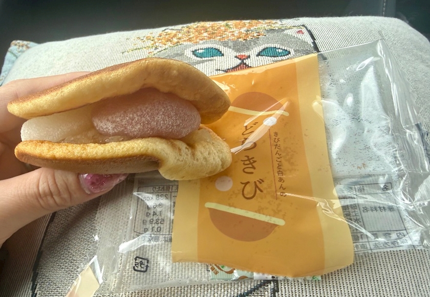 2色のきびだんご(プレーン、白桃)と白あんを