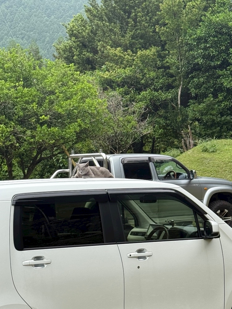 車の上に猫がいるから帰れない🥹