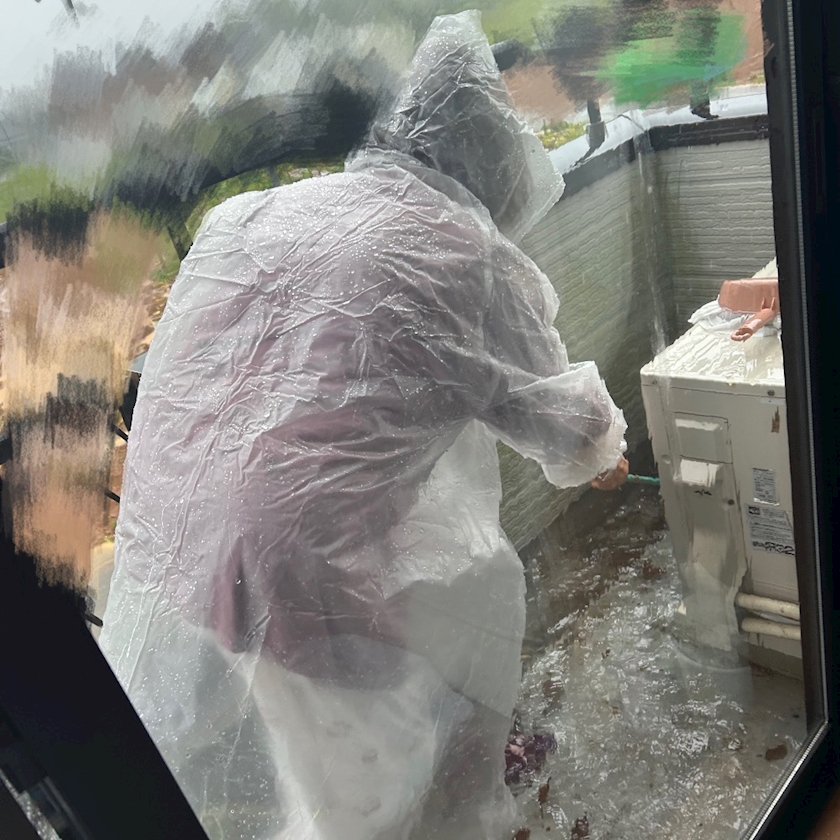 ぱぱ📞「ベランダ見てこい多分詰まってる」