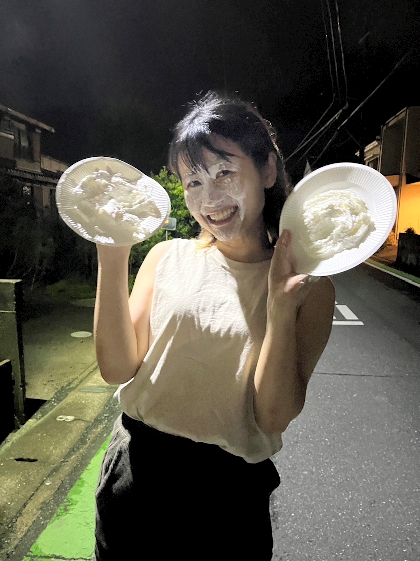 パイ投げの洗礼を受け、