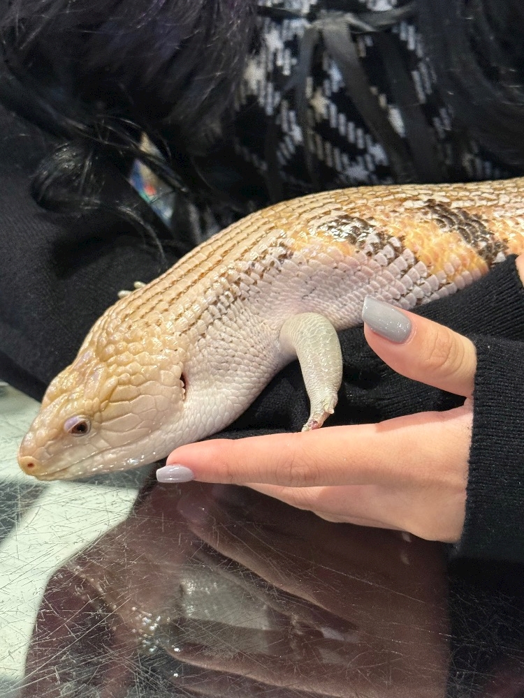 アオジタトカゲ初めて触ったけど不思議な感触だった!かわいーのまじぇ