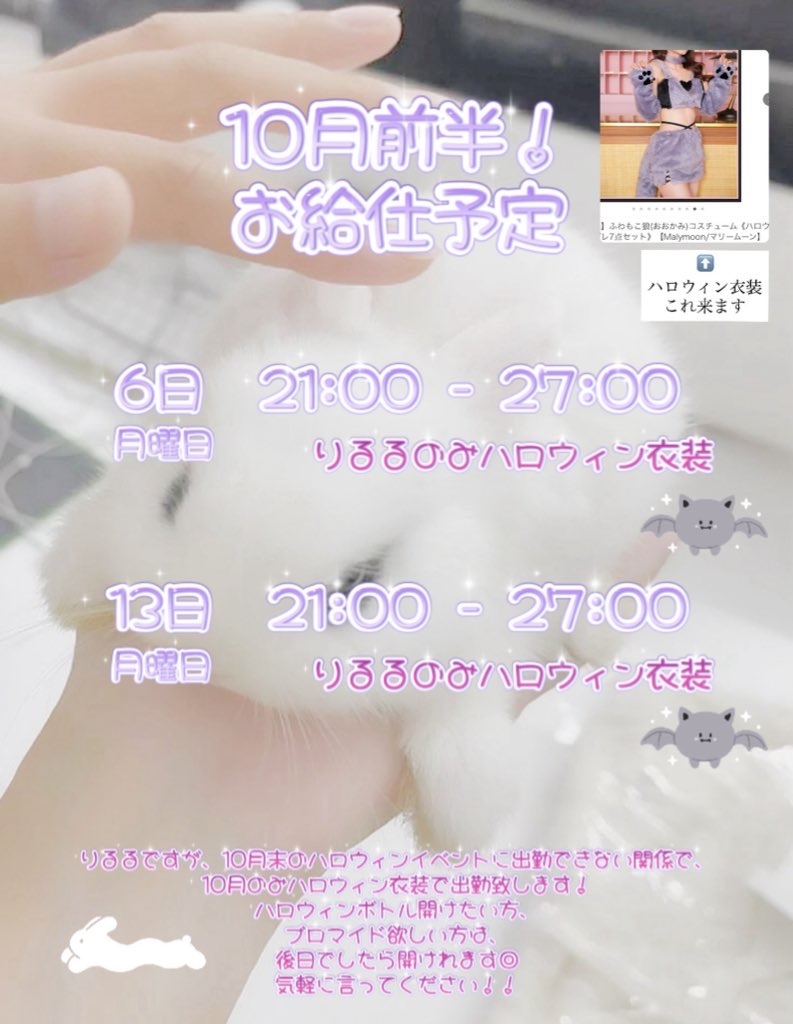 10月前半!お給仕予定🐺🤍¦ハロウィン衣装でいます👻🎃 - りるる🐇ᡣ . ̝ .ꛁּ .𓏸 【会えたらレア】 - アニマルパラドール・アニマルパラドール - 浜松のガールズバー