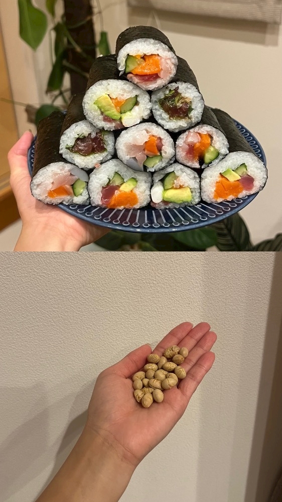 家族に手巻き寿司を作って、豆を21粒食べました🤭