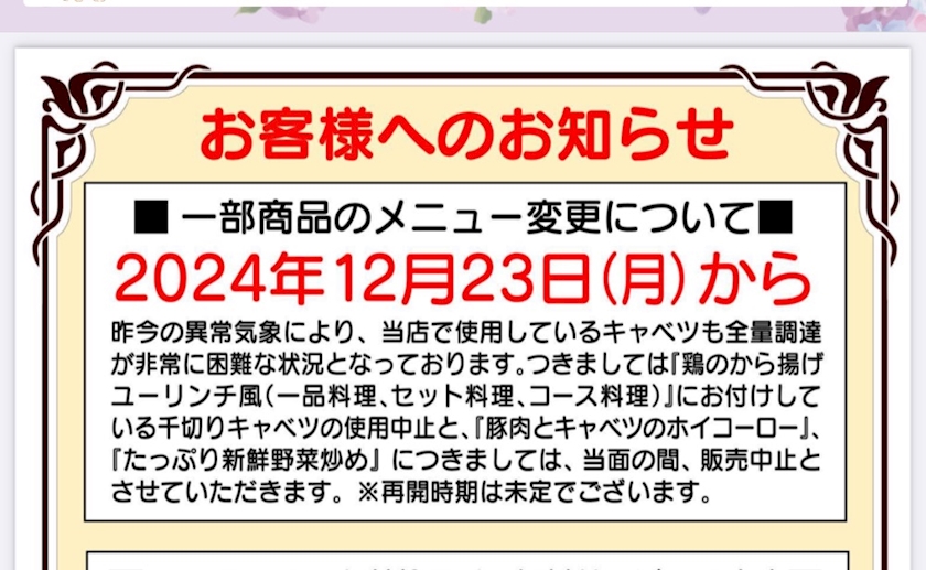 キャベツ価格高騰のダメージきた