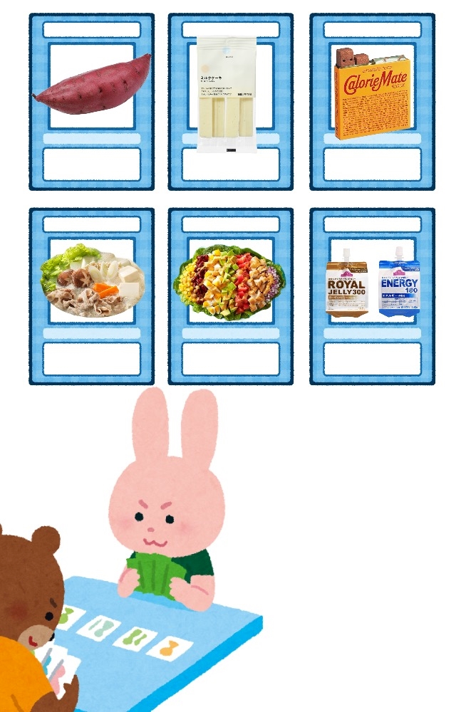 今回始めるにあたって食事と間食のデッキ組んだ📝