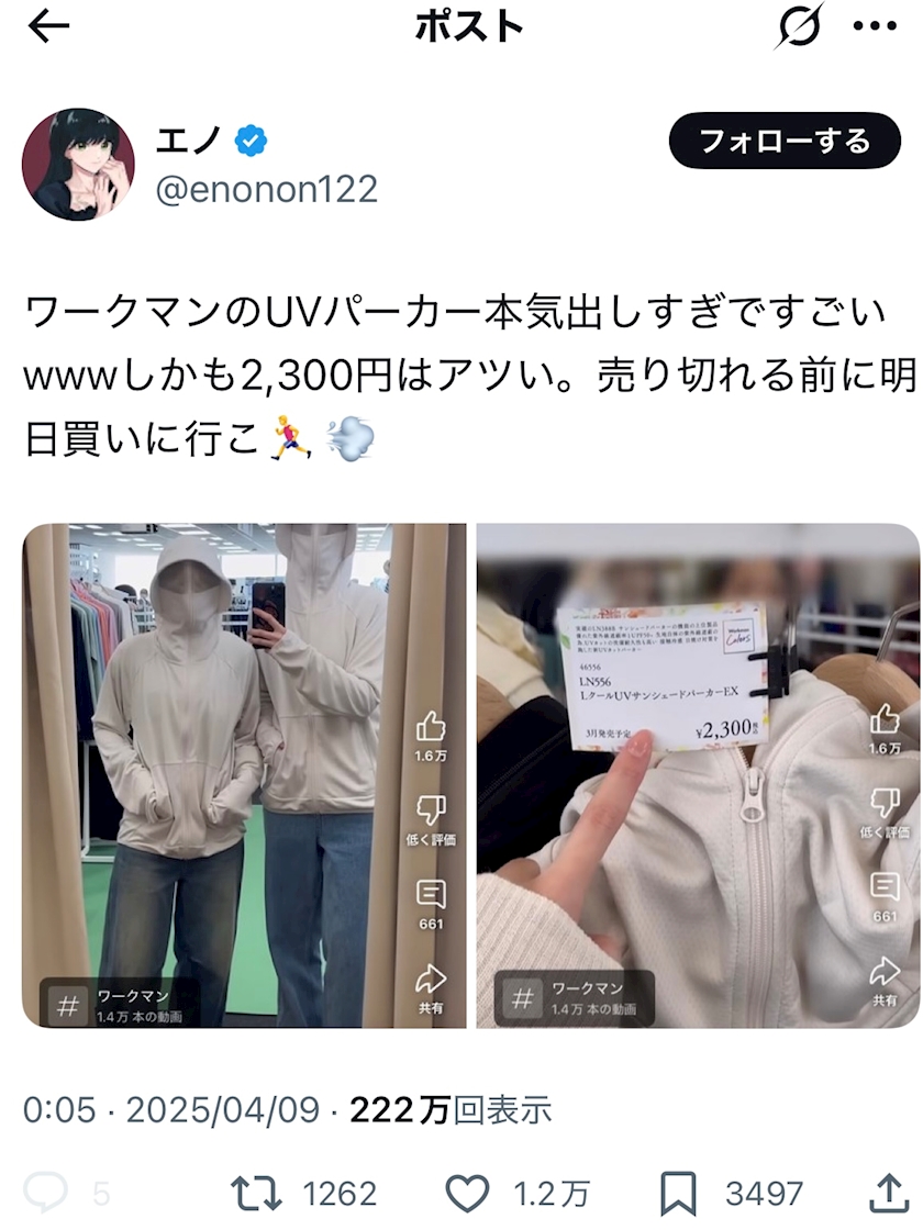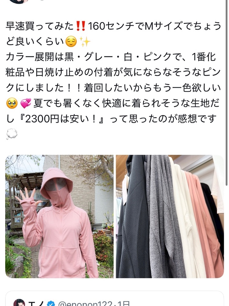 ワークマンに売ってるUVパーカー欲しい!!