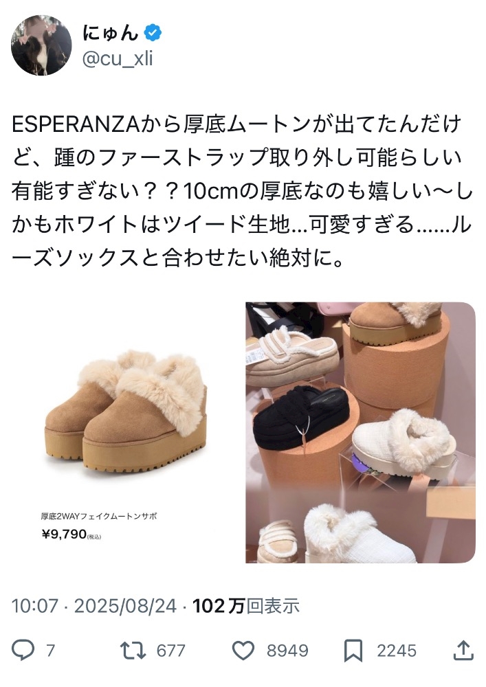 この厚底ムートン10cmあるらしくて非常に理想的😳‼️