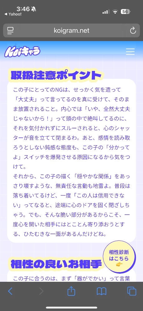 地味に流行ってるkoiキャラ診断