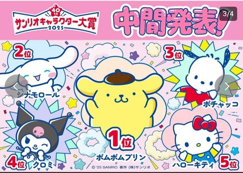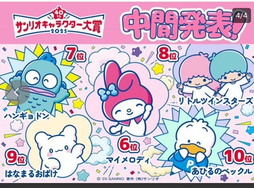 サンリオキャラクター大賞の中間発表がされたよ👀