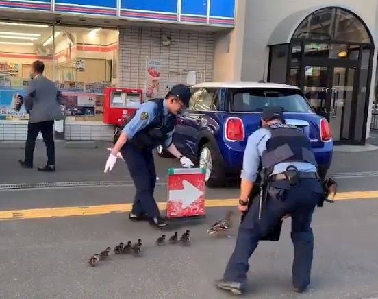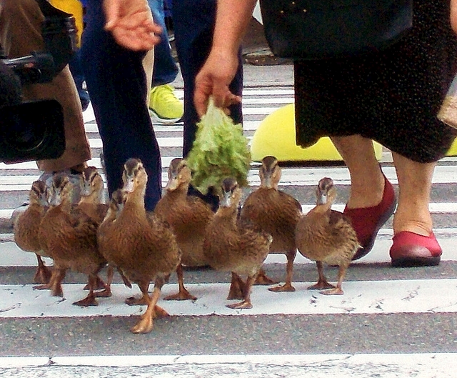 見守り隊の方々が鴨の好物で道案内中らしいです🥺