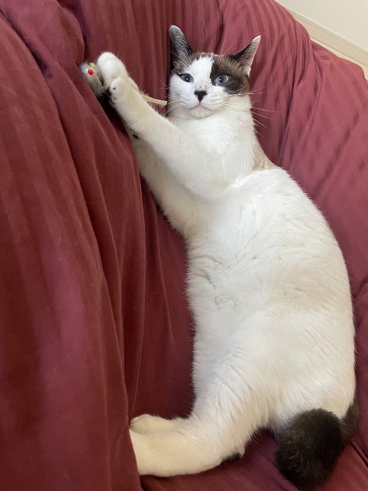 おもちゃで遊ぶ横着などねこしゃん🐈