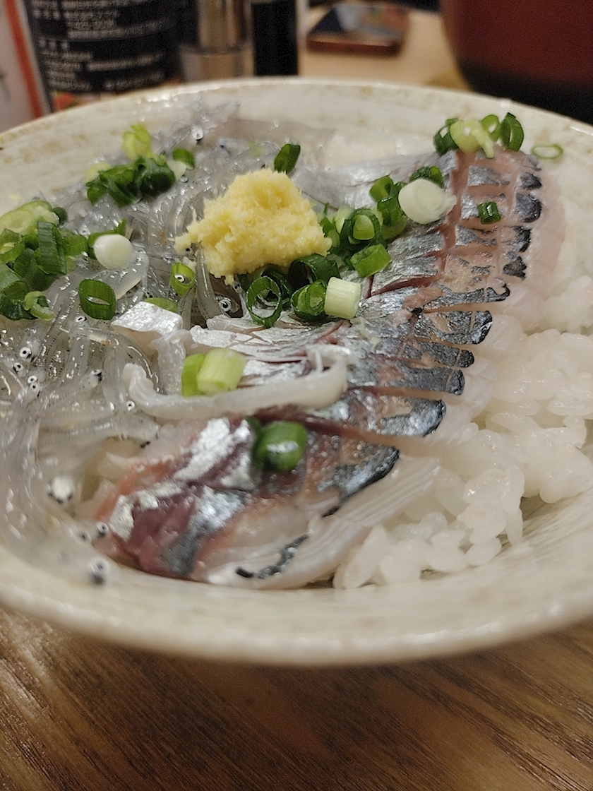 生しらすとアジの丼を食べたんだけどちょーー美味しくて