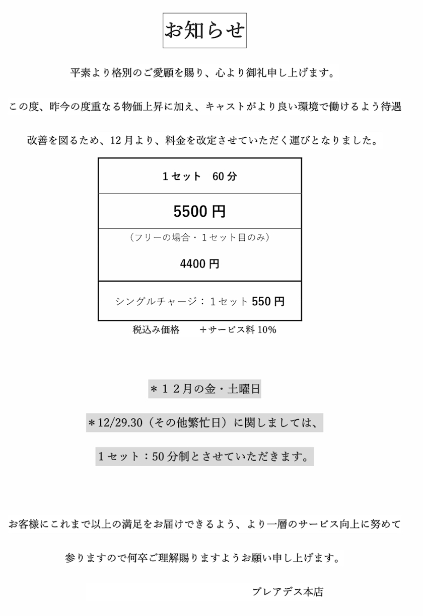 ⭐️料金改定のお知らせ⭐️