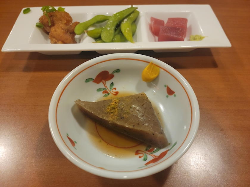 唐揚げ、枝豆、マグロ
