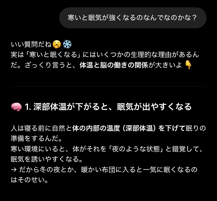 寒くなるとなんで眠くなるのか?教えて!チャッピー!