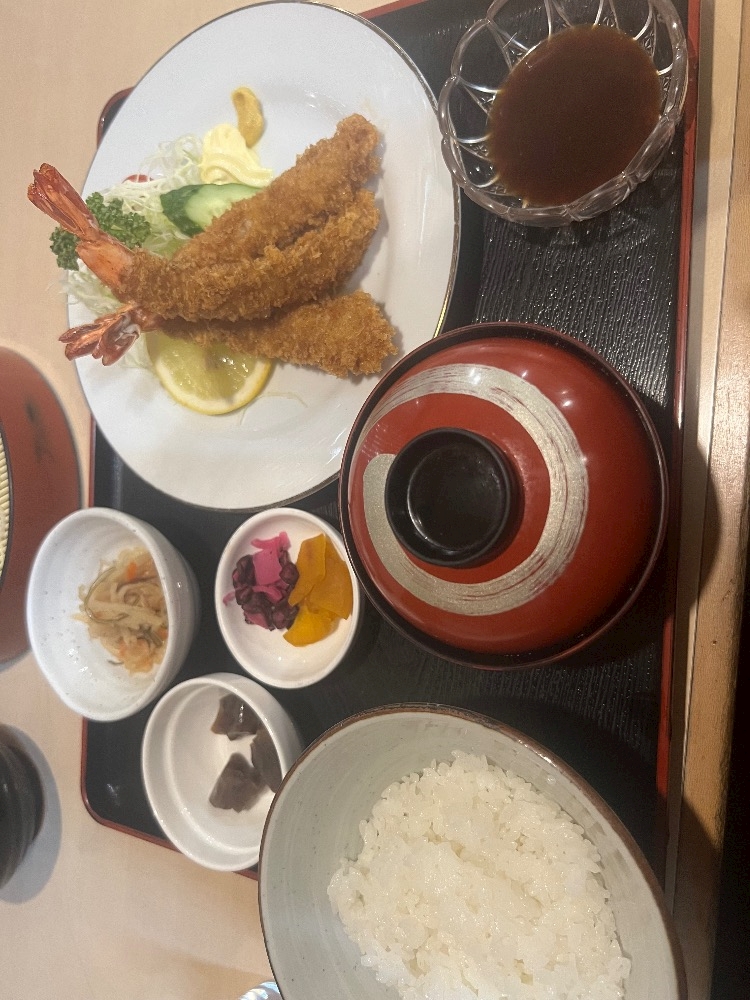 2日目のお昼は海老フライ定食🫶🏻