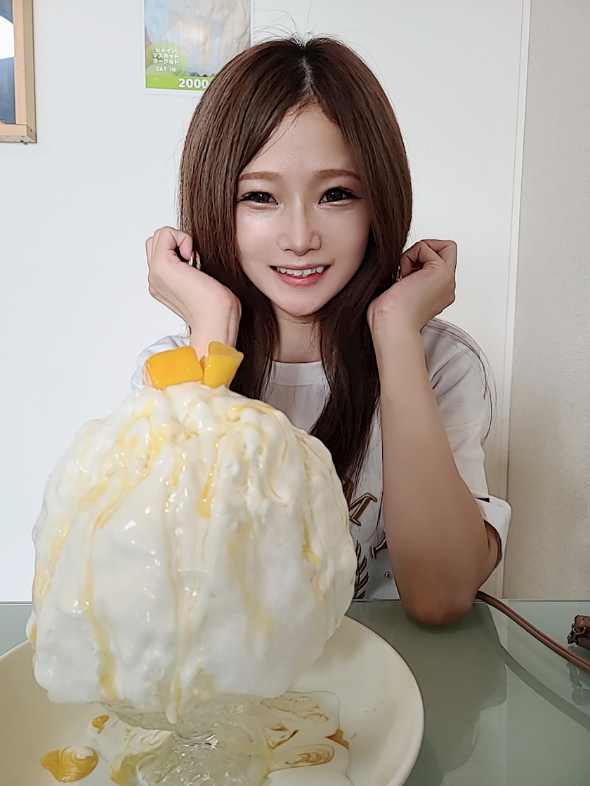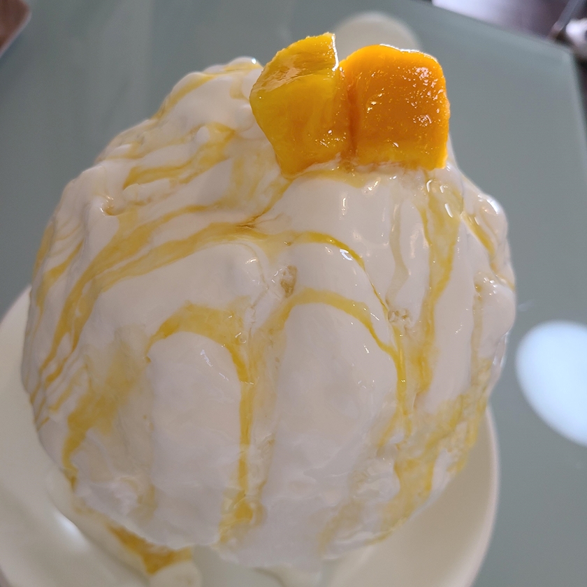 頭痛くならないふわふわ氷に、ヨーグルト&フルーツソースがかかってて美味しすぎた🥺🧡